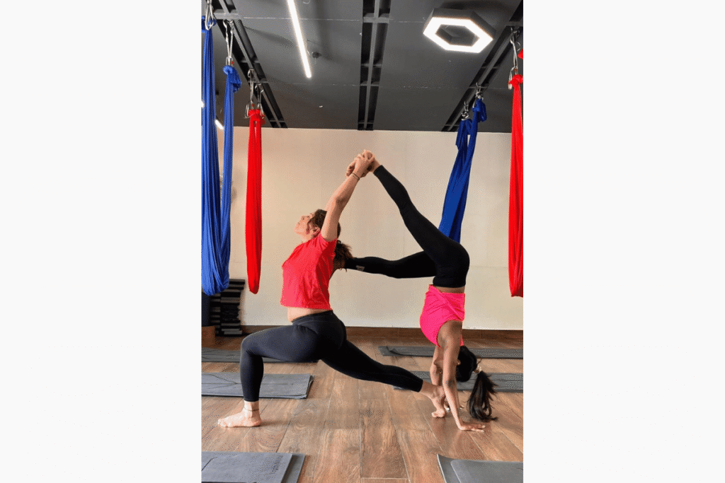 Led by Seema Sehgal Wadhwa, certified Yoga and Aerial Yoga trainer, these sessions balance structure with play. Her nurturing yet empowering approach ensures participants feel safe, supported, and confident while exploring partner-based movement.