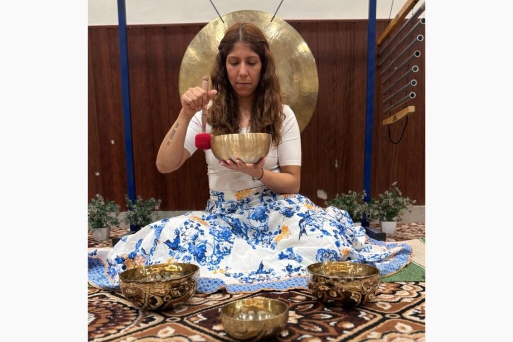 Sound Healing sessions are guided with care and awareness by Seema Sehgal Wadhwa, certified Yoga and Aerial Yoga trainer. Her grounding presence and holistic approach create a space where participants feel safe to relax deeply and restore fully.