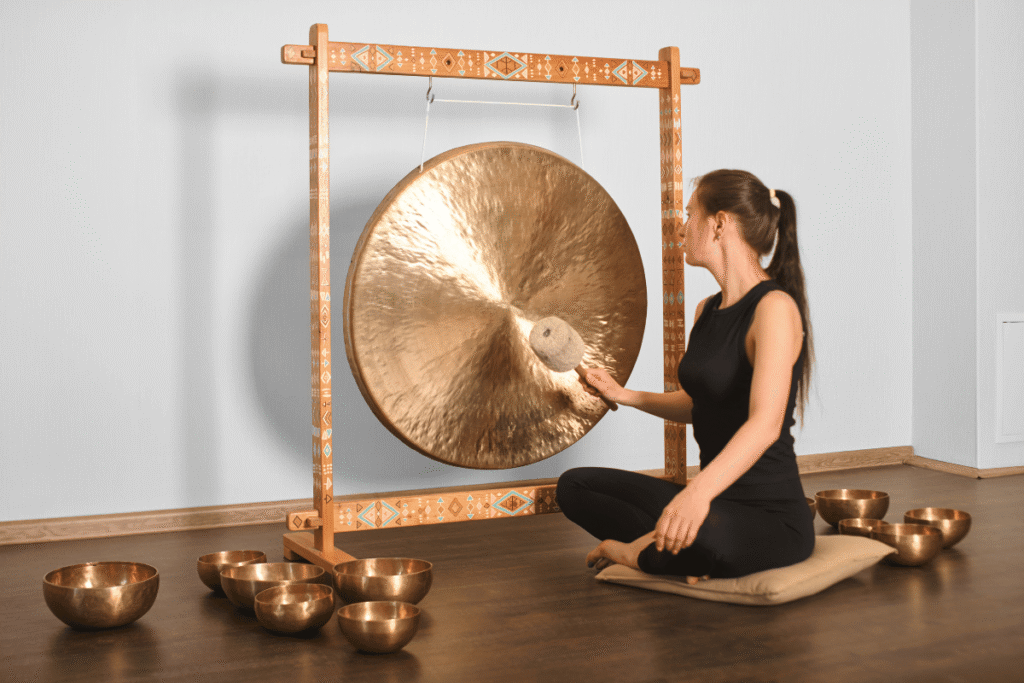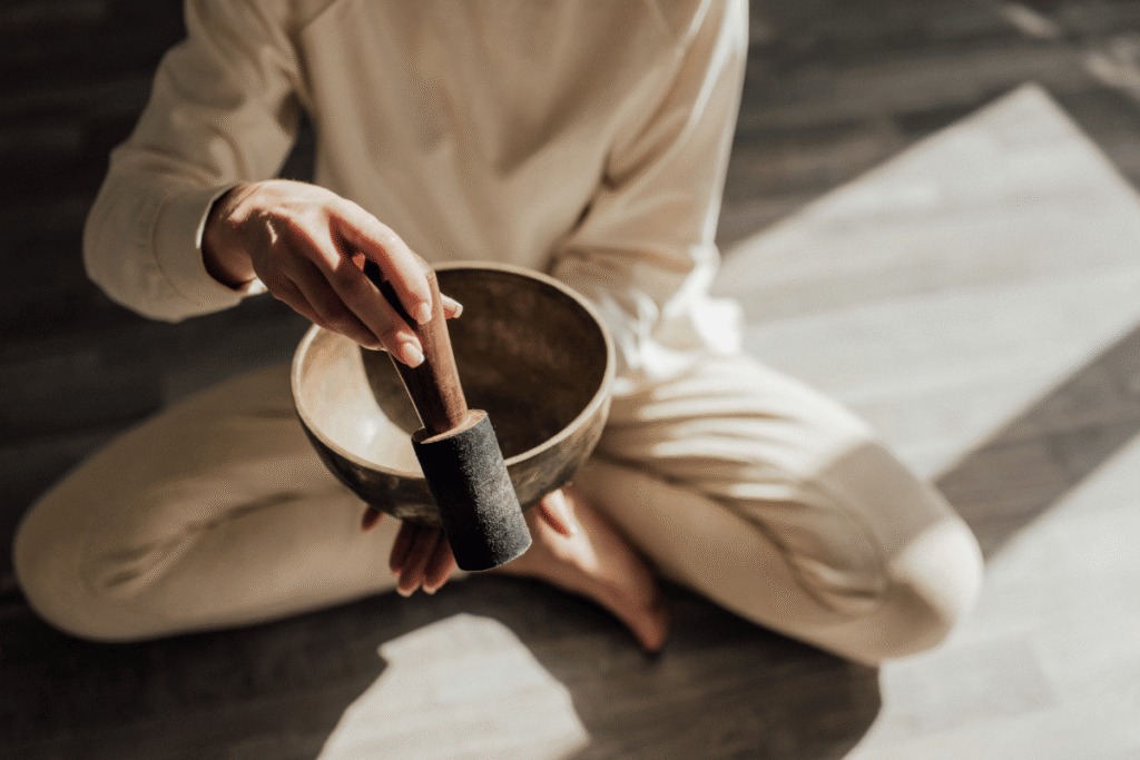 Sound Healing works on a cellular and energetic level using instruments such as singing bowls, chimes, and gentle tones. These vibrations help shift brainwaves into a meditative state, allowing the body to rest, restore, and reset naturally.